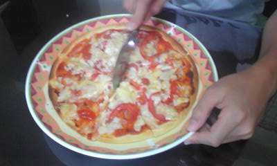 今日はぽぽじに手伝わせてピザ作りました。